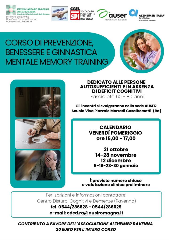 Il corso รจ rivolto alla popolazione in assenza di deficit cognitivo dai 60 agli 80 anni.