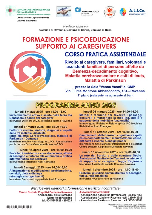 Per info e chiarimenti contattare il Centro Disturbi Cognitivi Demenze dell’Ausl della Romagna – Distretto di Ravenna 0544/286628 0544/286629