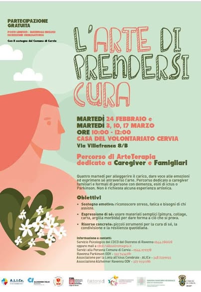 Un interessante incontro oggi alla Sala del Centro Sociale Cervese . Sono stati affrontati i temi dei care givers dei pazienti con patologie neurodegenerative ed esiti di ictus. Le associazioni dei pazienti e familiari hanno descritto le loro attività ed e’ stato presentato un corso di arteterapia per alleviare il carico emotivo e psicologico di chi si prende cura.
