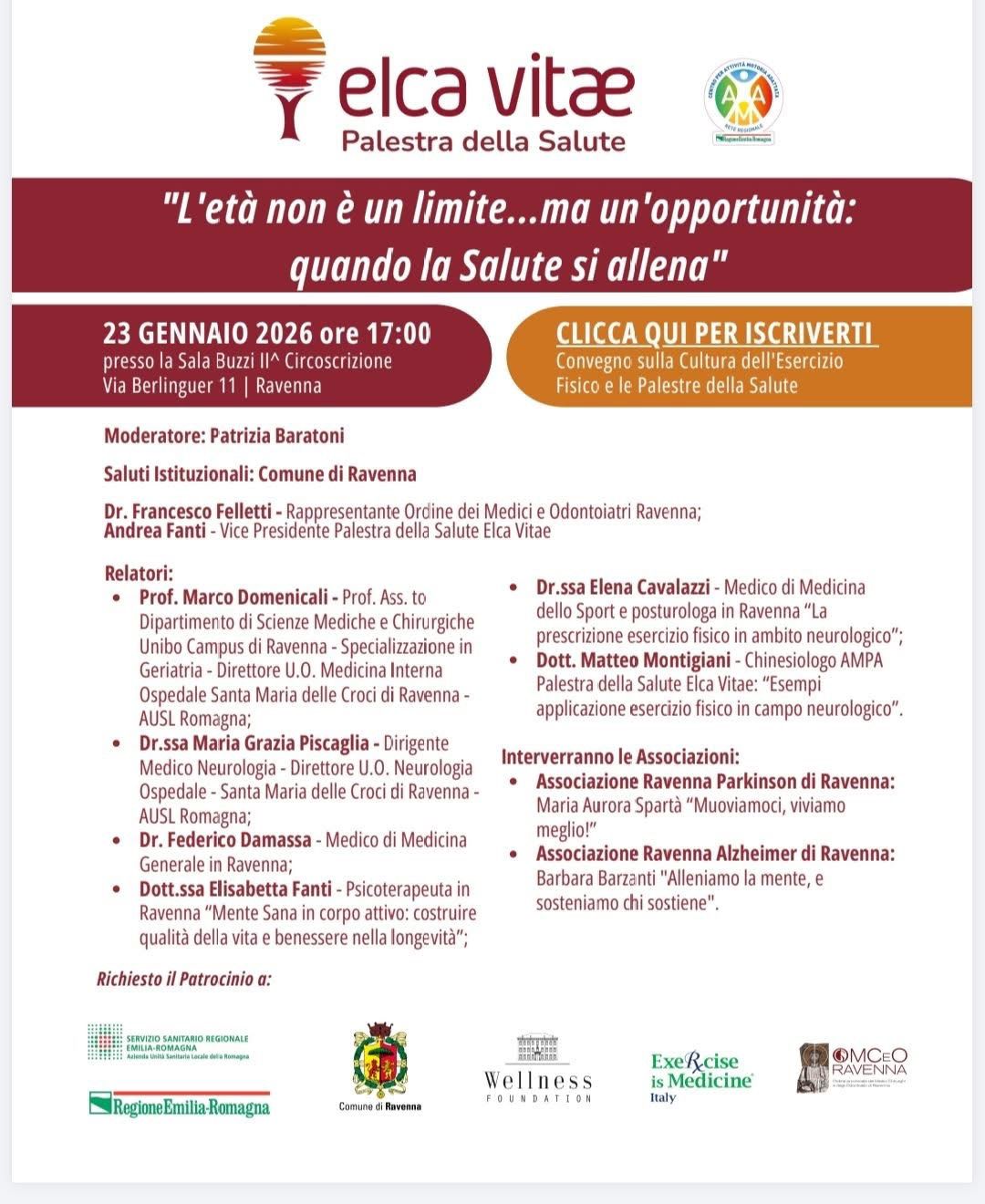 Vi aspettiamo il 23 gennaio presso Sala Buozzi, via Berlinguer n. 11 Ravenna per l’incontro “L’età non è un limite, ma un’opportunità quando la Salute si allena”